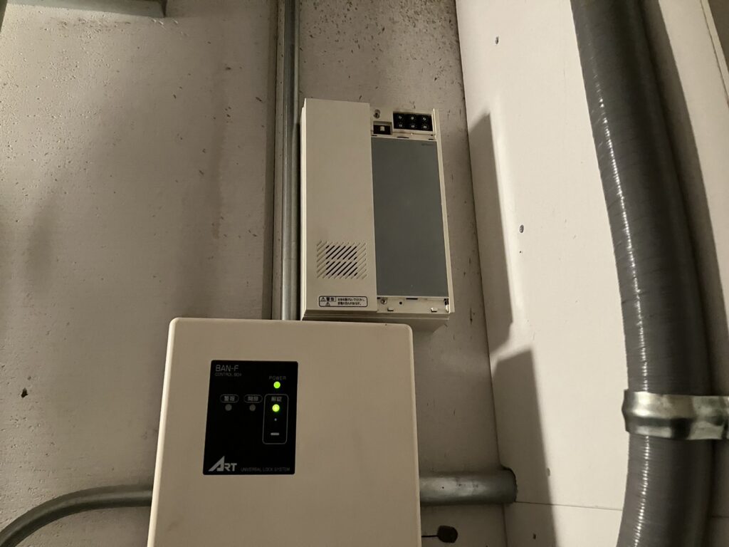 既存のアイホン製からパナソニック製へ更新したことで、制御装置のサイズが大きくなる問題が発生しました。 そのままでは既設位置に収まらないため、ネグロス電工の「ダクターチャンネルD1」を使用し、きれいに収まるよう調整して取り付けています。
